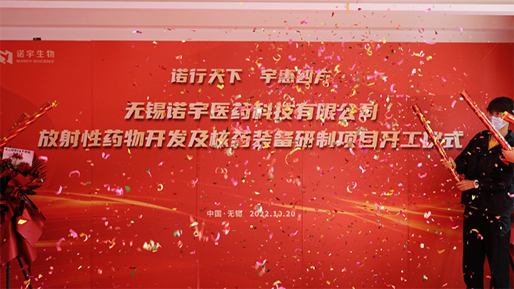 秋景正濃,正是蓄勢啟航的季節(jié)。自2022年9月下旬江蘇省生態(tài)環(huán)境廳輻射安全環(huán)評批復(fù)后(批復(fù)號 蘇環(huán)輻【2022】42號),諾宇醫(yī)藥位于長江南路35-208號的放射性藥物GMP研制基地正式完成了準(zhǔn)入,項目的建設(shè)自此拉開了帷幕。2022年10月20日上午,諾宇醫(yī)藥放射性藥物開發(fā)及核藥裝備研制項目開工儀式在無錫市空港經(jīng)開區(qū)隆重舉行。